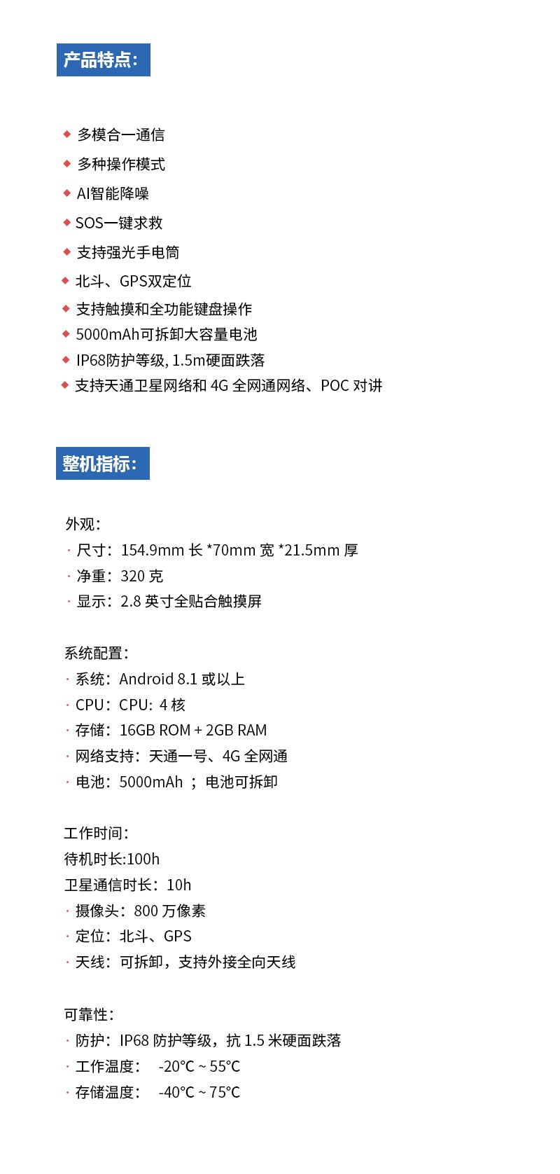 此外该款天通一号卫星手机支持SOS紧急呼救等常用功能。伟德体彩app手持机厂家直销批、北斗手持机天通手持机,支持IP68防护等级,灵活配置,支持定制。
