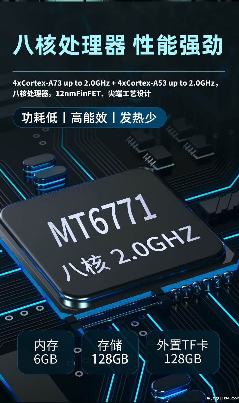 MT6771四核arm A73 2.0Ghz+四核arm A53 2.0Ghz |