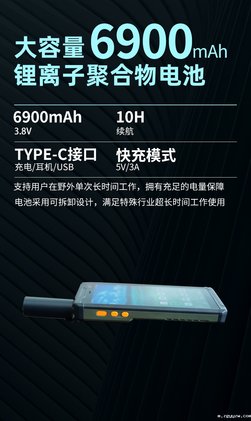 容量:6900mAh 续航10小时 支持可拆卸更换 |